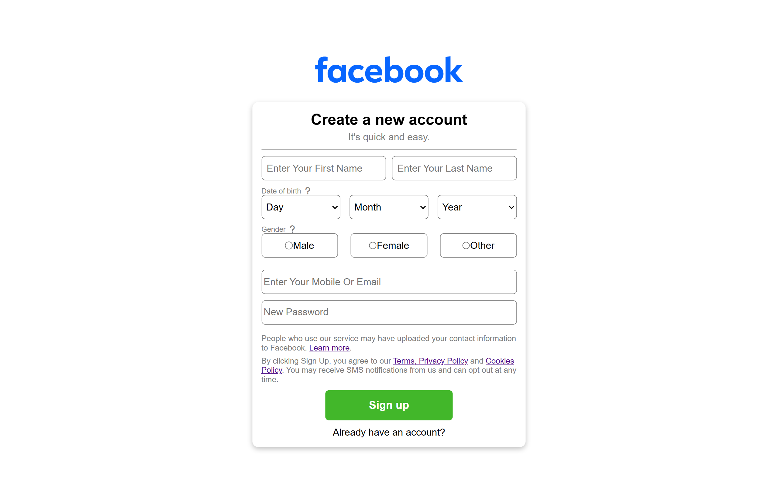 A responsive Facebook-style registration form built with HTML, CSS, and JavaScript, featuring validation, localStorage, and modern ES6 code.