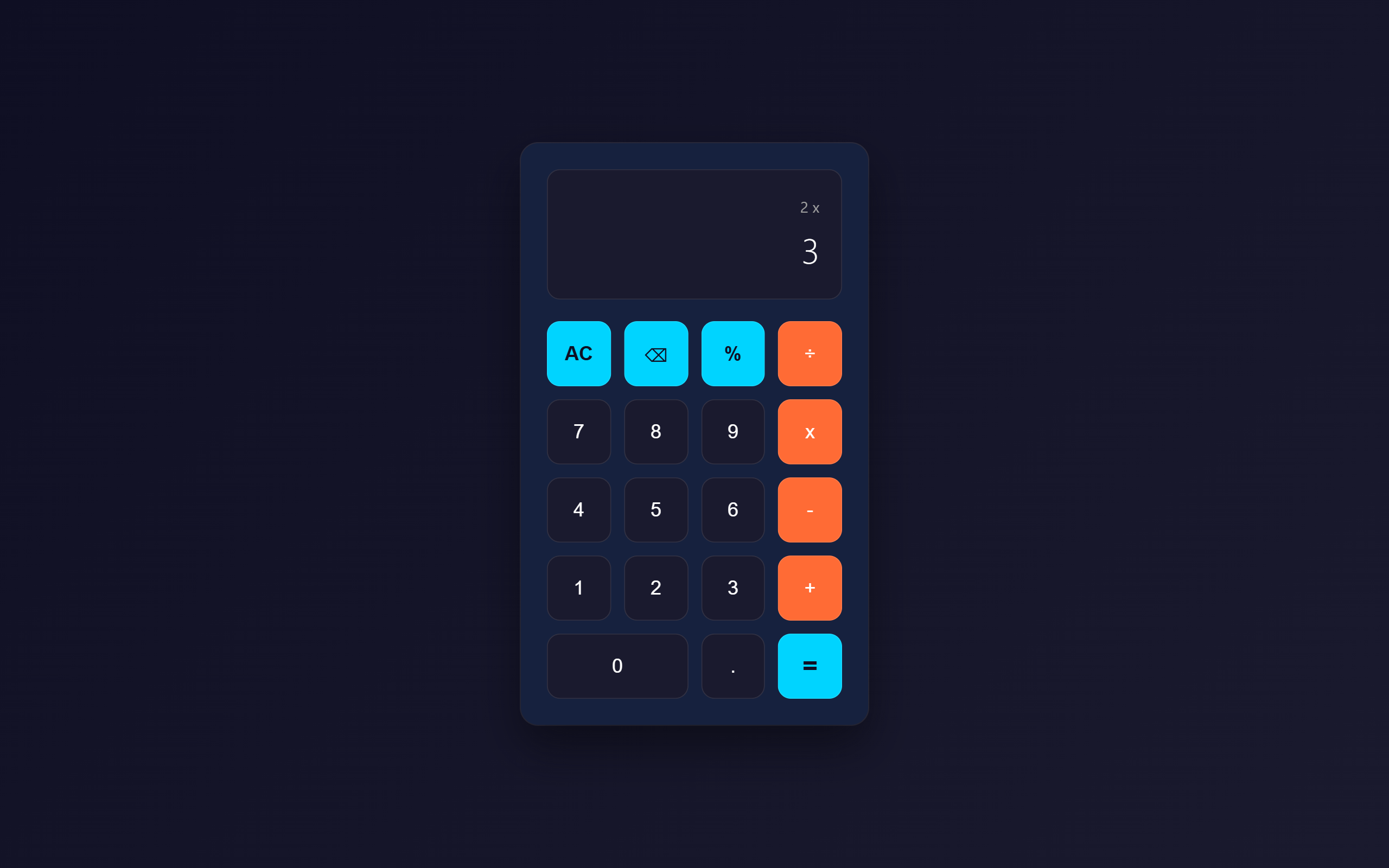 A responsive calculator web app built with HTML, CSS, and JavaScript, featuring clean ES6 logic and full arithmetic functionality.